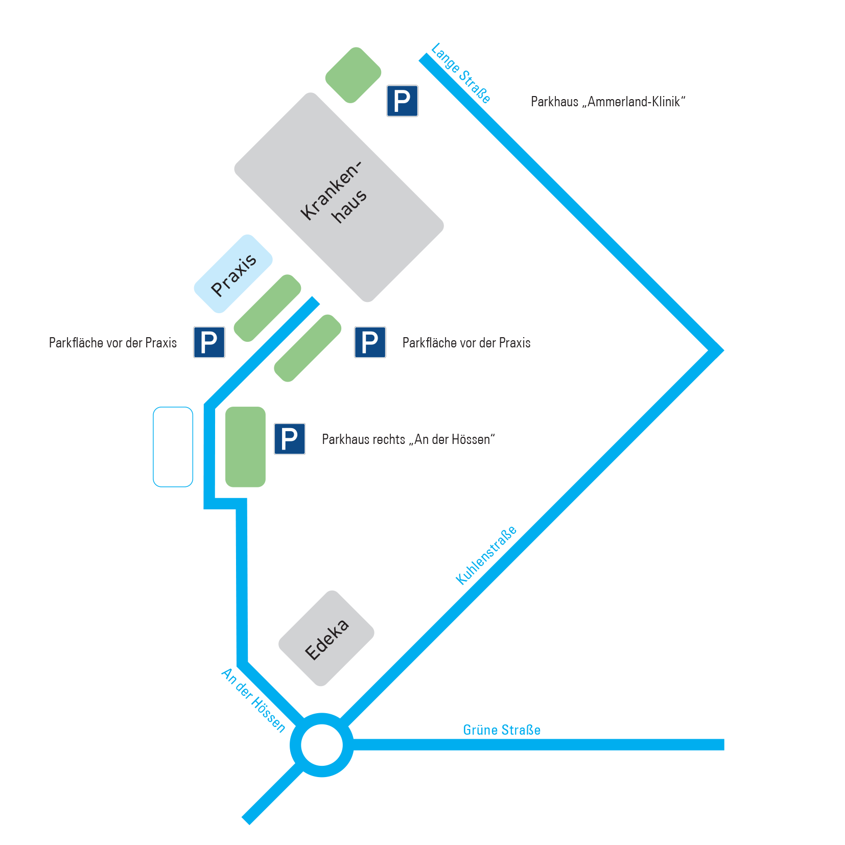 Sie können in Westerstede an folgenden Stellen in der Nähe unserer Praxis parken.
